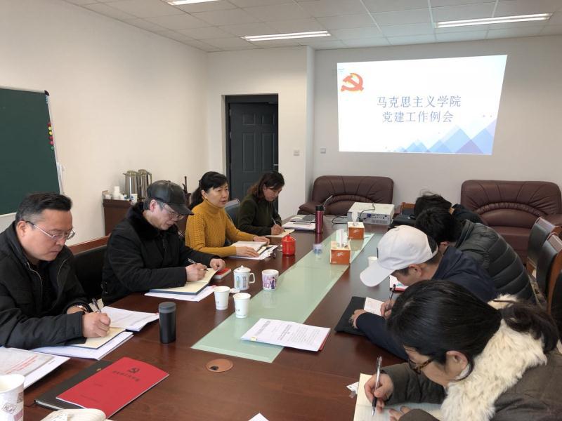 3月2日中午,马克思主义学院党总支在学院328会议室召开新学期党建工作部署专题会议。学院党总支委员、各党支部书记及学院组织员参加会议,院党总支书记王碧琴主持,会上,王碧琴书记回顾总结了2017年学院党建工作情况,重点对2018年上半年党建工作进行部署。提出新学期党建五个方面的重点工作:一是履行管党治党主体责任,落实党建工作责任制、意识形态工作责任制、党风廉政建设责任制等;二是持续助推习近平新时代中国特色社会主义思想、十九大精神“三进”工作,推动思政课教师学习好、研究好、阐释好、讲授好党的十九大精神,特别是习近平新时代中国特色社会主义思想;三是进一步加强基层党支部建设,发挥党支部的战斗堡垒作用,落实标杆党支部建设工作和党支部书记教育培训;四是持续有效推进“两学一做” 学习教育常态化制度化,严肃党内组织生活、“三会一课”,开展“不忘初心、牢记使命”主题党日活动,推进党建和教学科研工作相融合;五是召开2017年度基层党支部组织生活会和开展民主评议党员工作。