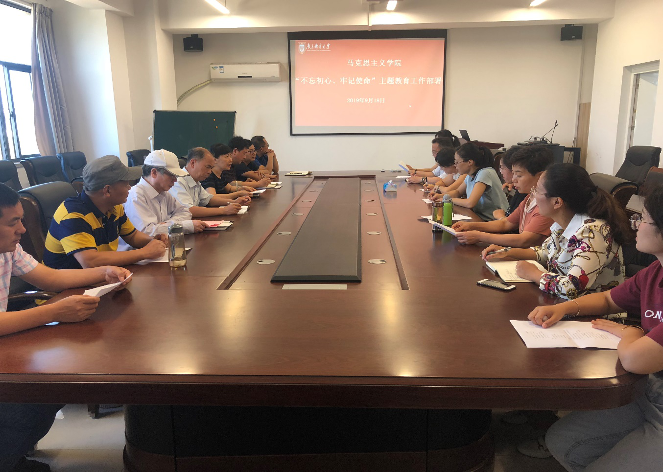 会议要求,全院上下要围绕扎实开展好“不忘初心、牢记使命”主题教育,切实提高政治站位,深刻认识开展主题教育的重大意义;准确把握目标任务,确保我院主题教育取得实实在在的成效;着力加强组织领导,推进我院主题教育扎实有序开展。会议强调,一分部署、九分落实,要认真贯彻党中央决策部署和学校党委要求,努力实现“理论学习有收获、思想政治受洗礼、干事创业敢担当、为民服务解难题、清正廉洁作表率”的目标,以实际成效推动马院实现高质量发展,以优异成绩迎接中华人民共和国成立70周年!