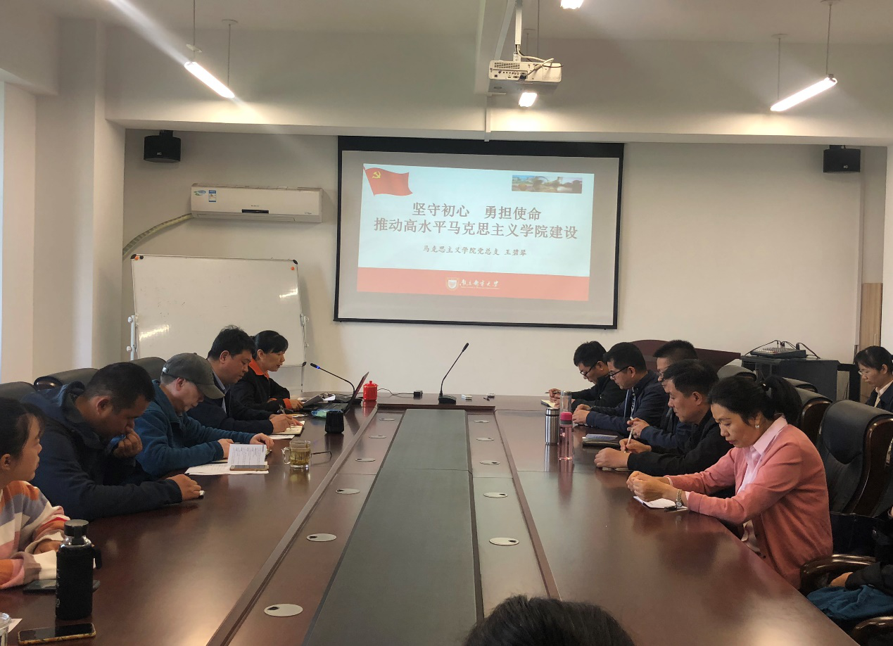 10月30日上午,我院党总支书记王碧琴在文科楼330会议室以“坚守初心、勇担使命,推动高水平马克思主义学院建设”为题,为全院师生党员讲主题教育专题党课。校党委“不忘初心、牢记使命”主题教育领导办公室第一指导组成员到会指导。