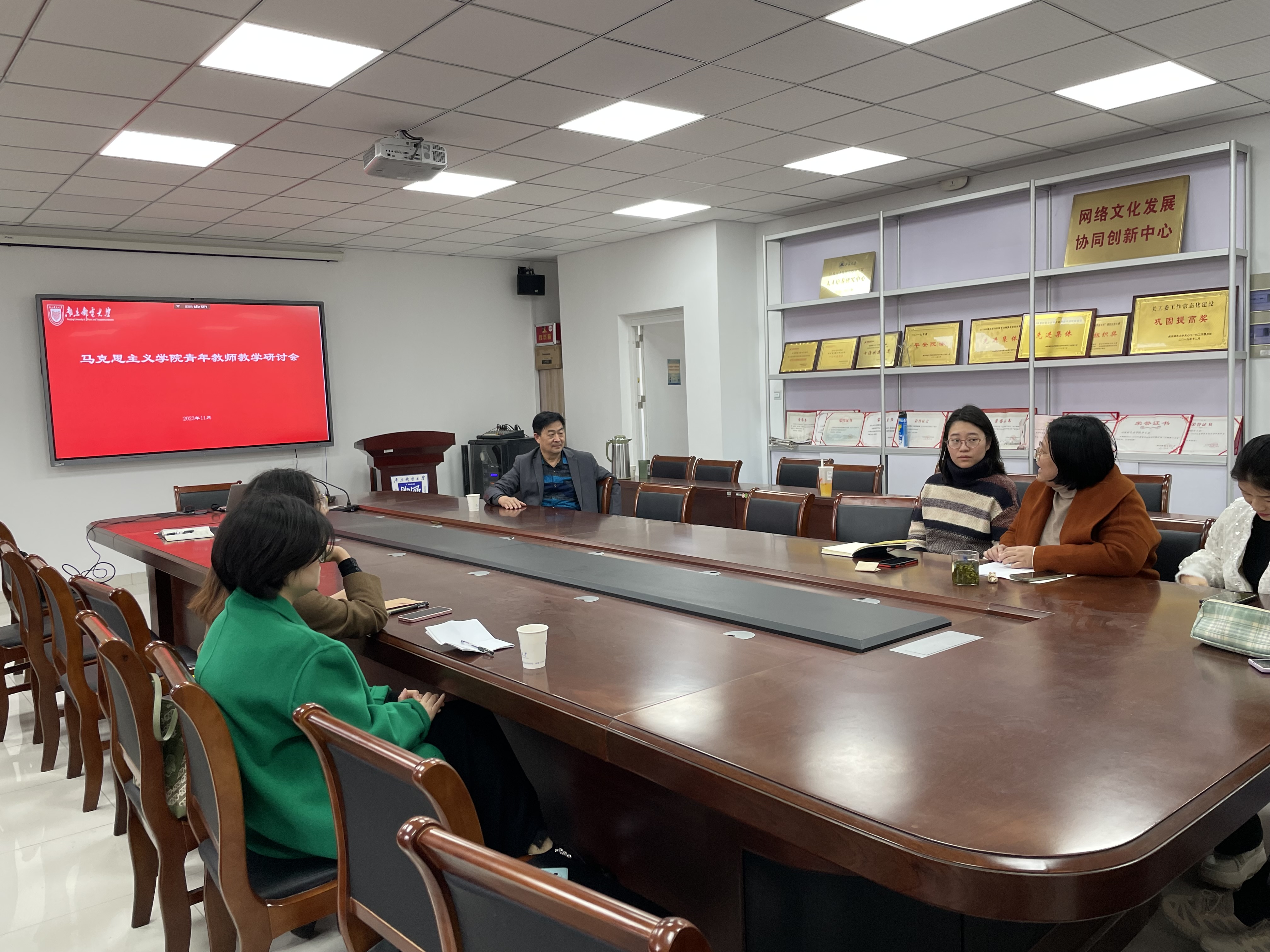 11月15日,马克思主义学院在文科楼330会议室举办青年教师教学研讨交流会,活动邀请校关工委沙风老师参加。