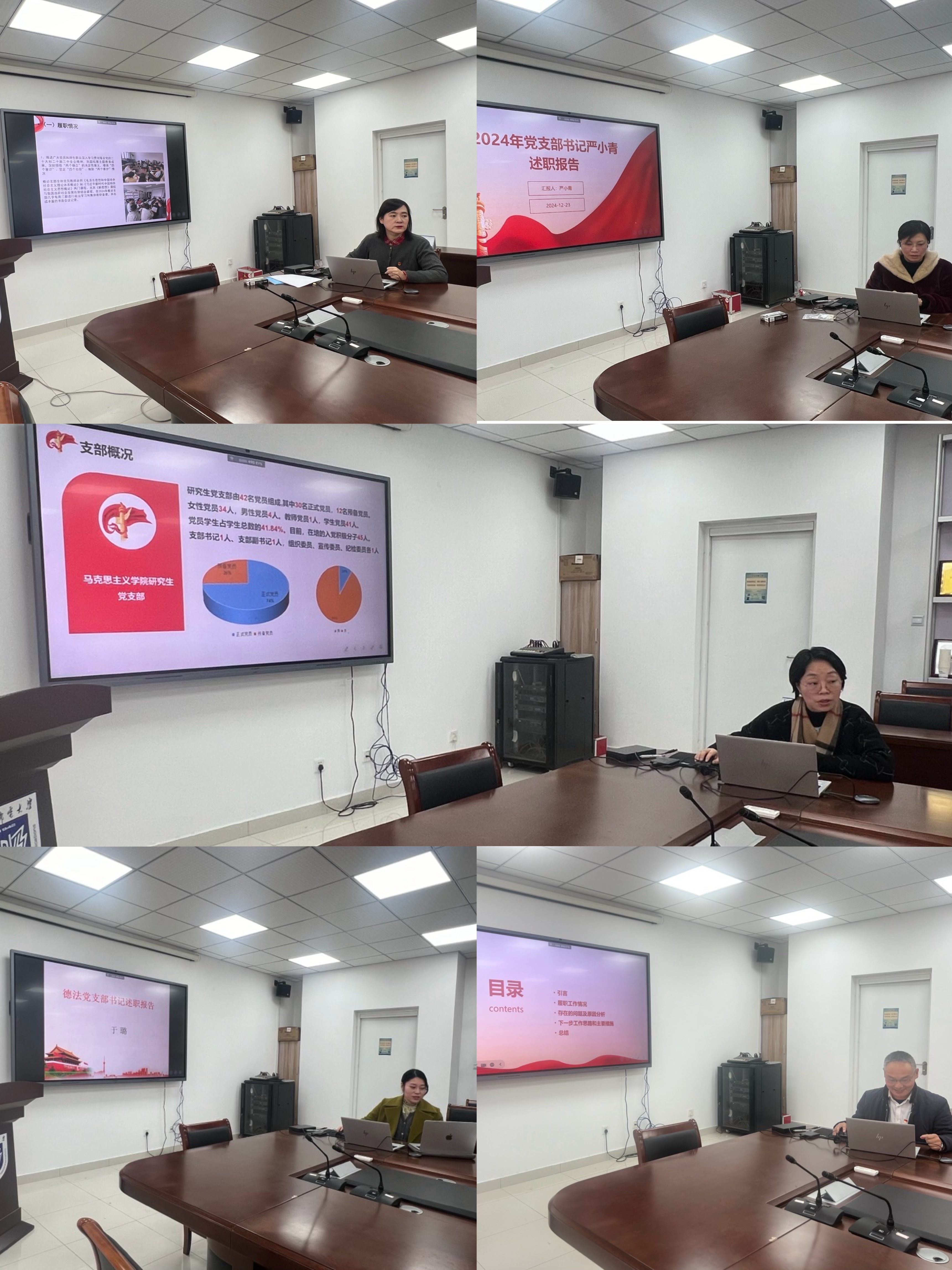 12月26日下午,马克思主义学院党委在文科楼330会议室召开2024年度党支部书记述职评议会,对学院党支部书记抓党建工作进行考核。会议由学院党委书记李大伟主持,学院领导班子、党委委员、各党支部书记参加会议。
