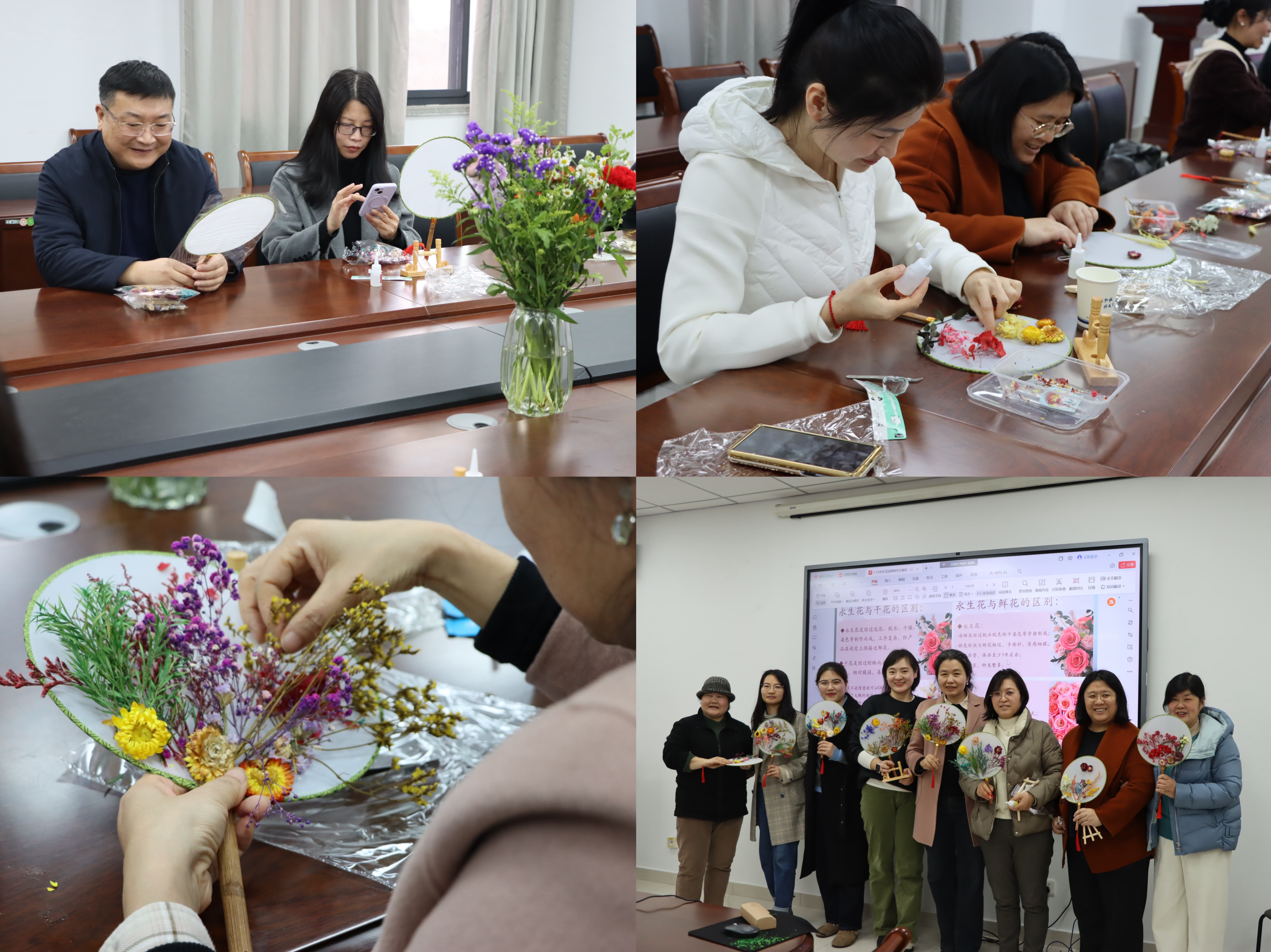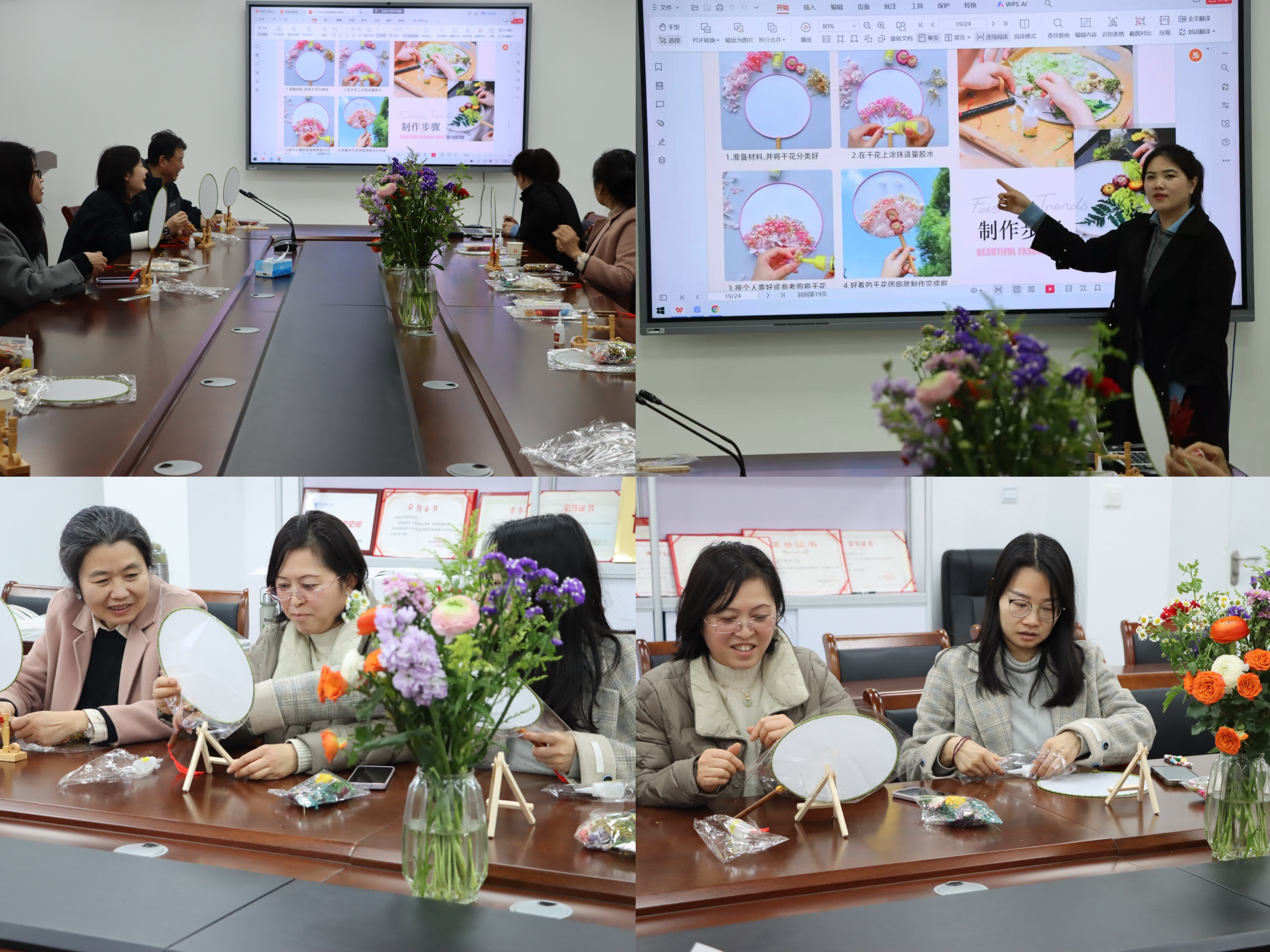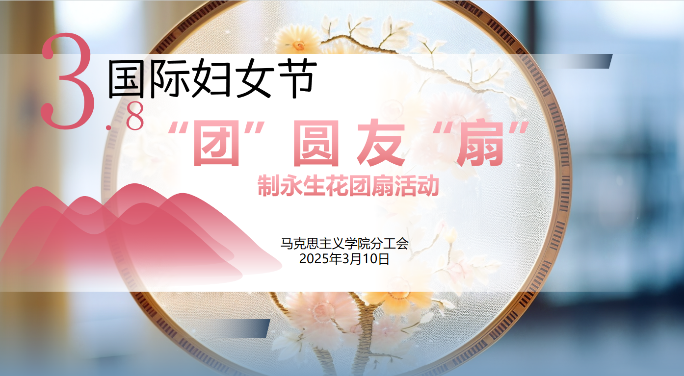 3月10日,马克思主义学院分工会特别策划“‘团’圆‘友’扇”制永生花团扇活动,20余位女教职工集聚一堂,欢度“三八”国际劳动妇女节。活动将传统手工艺与现代美育相结合,通过沉浸式艺术创作展现新时代知识女性的独特风采。